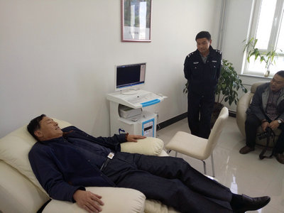 工作人员体验音乐放松椅