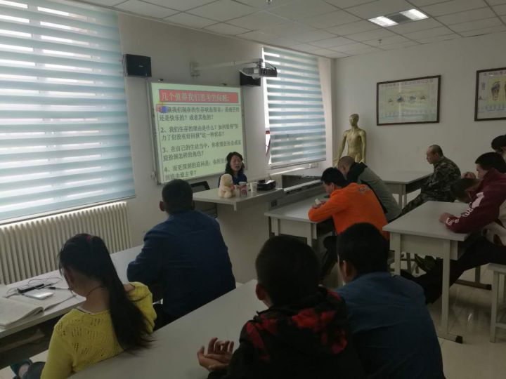 众所周知,人的认知是一种来自于大脑的反应,但是由于残疾人在生理上存在一定的缺陷,因此他们在自我认知上会出现自卑、抑郁、偏执等负面情绪。为了让他们正确的认识自己,中心国家二级心理咨询师李文莉老师首先以一个放松自我的体验游戏开始了下午的讲座,通过与残疾人的互动,李老师为大家讲解了如何认识自我以及怎样正确把握自己的优缺点等内容。通过一段“苍蝇的一分钟生命”的短片,运用暗示的方法,告知在座的残疾人认识自己存在的生命价值,懂得合理运用自己的优缺点,做出更多富有意义的事情。李老师通过理论知识和游戏互动相互交替的方式,不断鼓励残疾人积极向上的面对真实的自己,并且不断暗示每一位残疾人,他们每一个人的存在都是有价值、有意义的。
