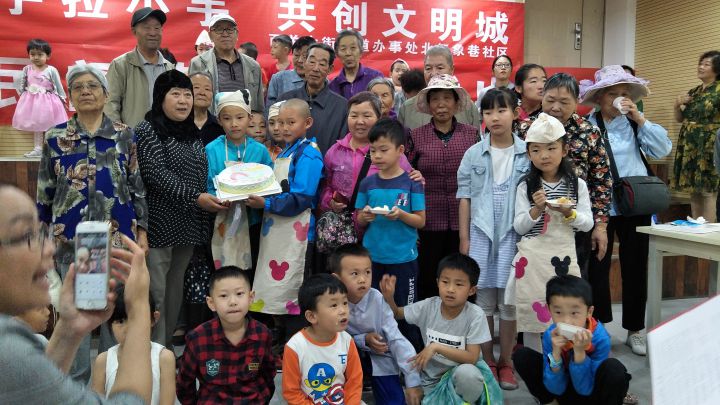 小书迷的儿童代表带领爷爷奶奶进入小书迷书店进行参观。还为居民代表准备一份孩子们精心制作的美味蛋糕,在大家品尝蛋糕的同时孩子们还为大家准备了一个好听的故事,老师们也特意带来了一段精彩街舞表演。