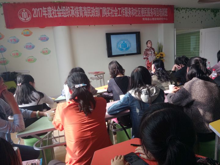 为了提高参加“2017年度社会组织承接青海省民政部门购买社会工作服务和社区便民服务项目”员工及志愿者的实务工作能力,动员员工积极参与项目过程,提高自身业务能力。2017年9月6日,青海省心理咨询研究中心为项目团队员工及志愿者40多人开展了培训班,进行系统的培训。