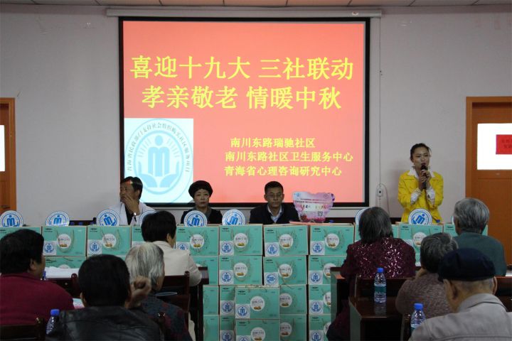 “喜迎十九大·三社联动·孝亲敬老·情暖中秋”为了让瑞驰社区46名特困老年人感受到党和政府的关爱。2017年9月28日青海省心理咨询研究中心结合“情系老人,点燃夕阳”特困老年人关爱项目实施方案积极为老年人开展营养健康讲座、爱心义诊及中秋节日慰问系列活动。