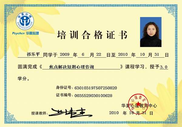 心理咨询师焦点短期解决课程培训合格证