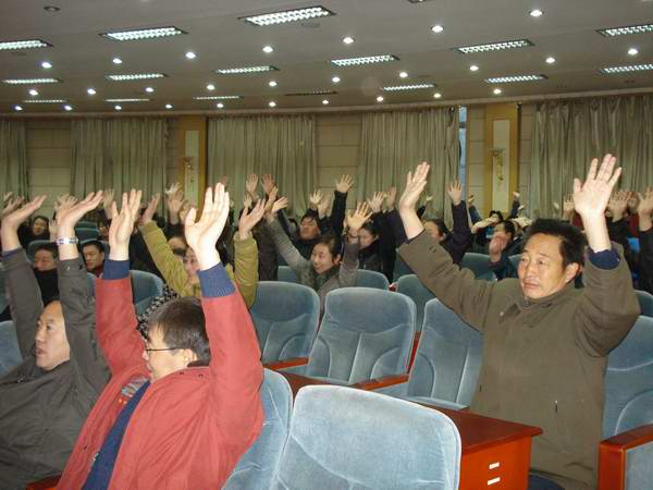 图为全体听课老师及校长在祁主任的引导下进行团体训练